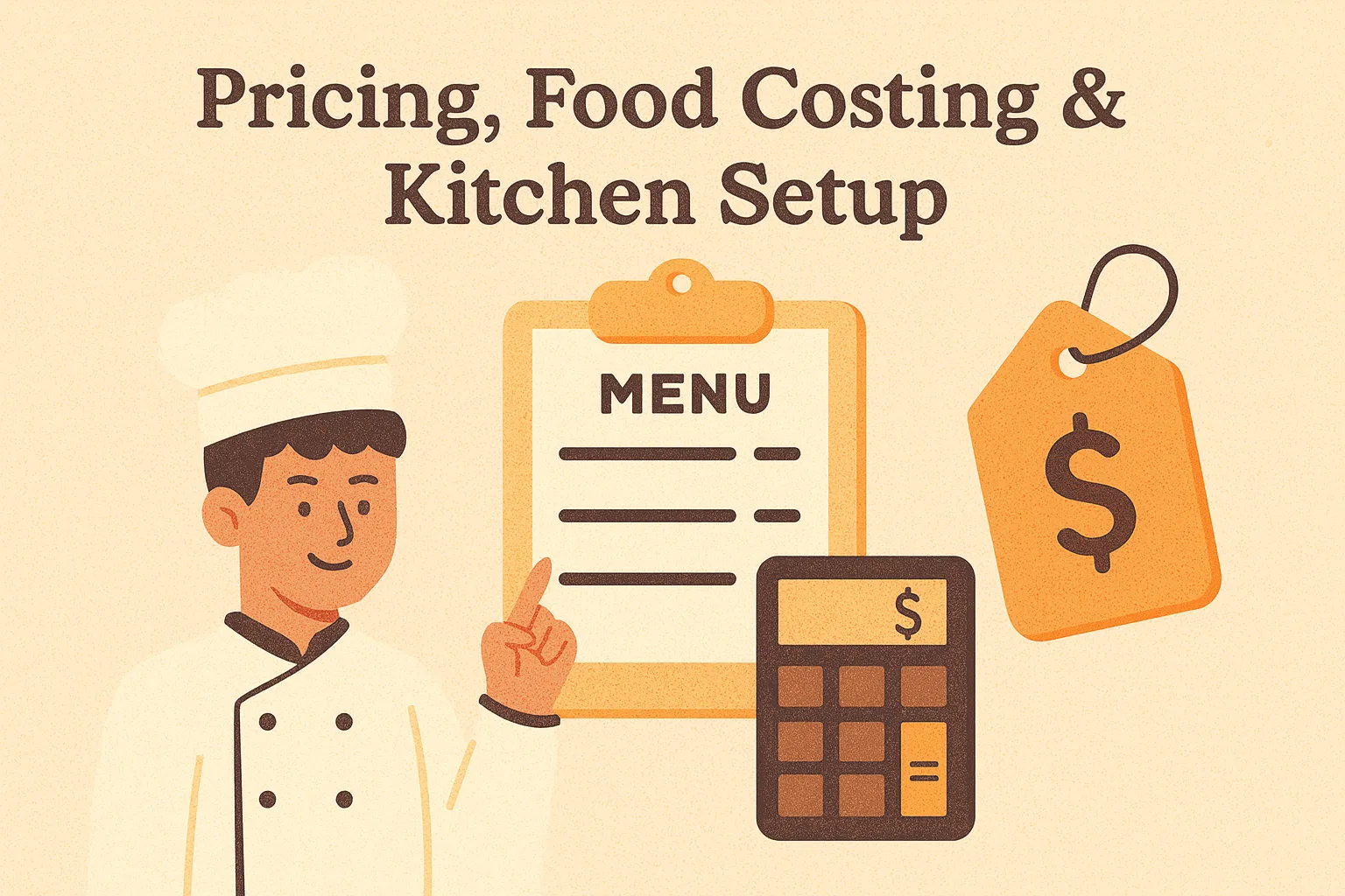 Unit economics, Food Cost Calculator, kitchen setup checklist, menu design, and biz profile setup. Includes an Exercise: Create your final menu sheet.